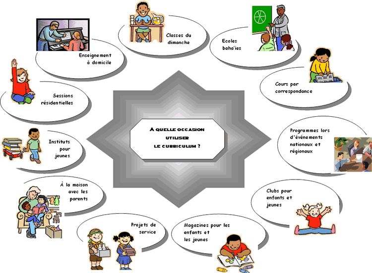 Certains de ces vecteurs de diffusion de l'enseignement baha'i utilisent des salles de cours et sont réguliers, d'autres sont intermittents et moins conventionnels, d'autres encore, isolés ou limités à un petit nombre d'individus. Certains sont centrés autour d'activités pouvant toucher à la fois des baha'is et des non baha'is. Tous ces vecteurs peuvent et doivent s'inspirer du curriculum national d'études baha'i, en fonction des programmes qui les concernent ; faute de quoi, ces divers vecteurs sont isolés et séparés les uns des autres, alors qu'ils pourraient être reliés et contribuer ainsi, de façon collective, à l'avancement général de la communauté baha'ie vers des buts clairement définis dans les écrits.