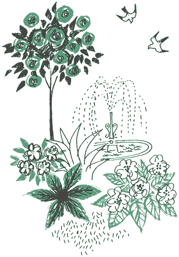 mur et sourient à la vue d'un si beau jardin. Le petit jardinier chante en coupant