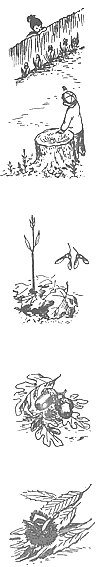 souffle, les feuilles sèches recouvrent la graine et, quelque temps après,