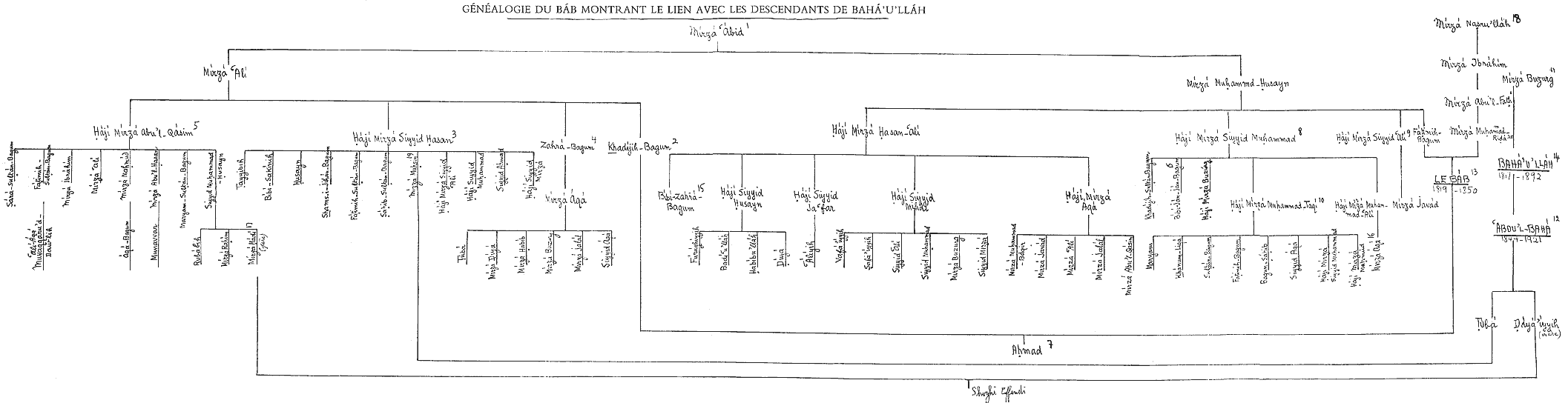 Synoptique de l'arbre généalogique de Baha'u'llah et du Bab