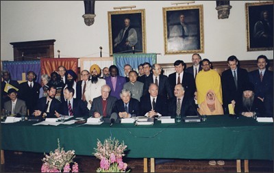 dans le cadre établit lors du Parlement des Religions du Monde de 1993 à Chicago,