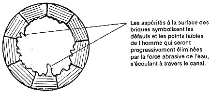 de neuf briques. Sous l'action de l'eau qui y coule, les briques situées