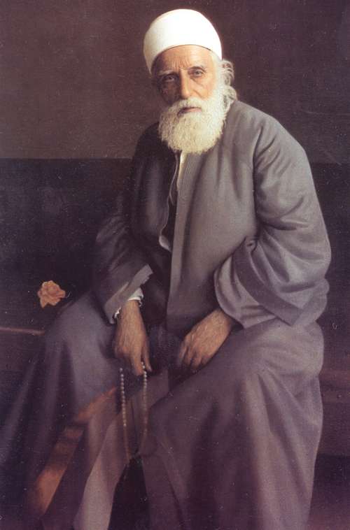 Sujet: Portrait d'Abdu'l-Baha peint par M. Saminy. Ce tableau se trouve dans le bâtiment de la Maison Universelle de Justice, juste avant d'entrer dans la salle du conseil. | Lieux: