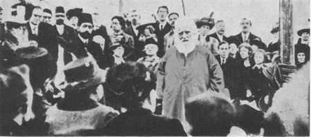 Sujet: Discours d'Abdu'l-Baha disant "Le temple est bâti" en visualisant l'avenir merveilleux de ce temple lors de la petite cérémonie posant symboliquement la 1ère pierre de fondation du premier temple mère de l'ouest. | Lieux: