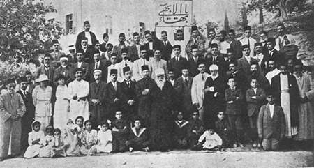 Abdu'l-Baha au mont Carmel avec des pélerins occidentaux et orientaux.