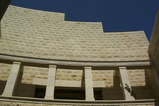 Ouvertures dans la montagne permettant l'apport de lumière naturelle dans le Centre d'Etude des Textes.