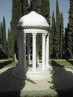 Tombe de la soeur d'Abdu'l-Baha et fille de Baha'u'llah au centre du jardin de la Maison Universelle de Justice.