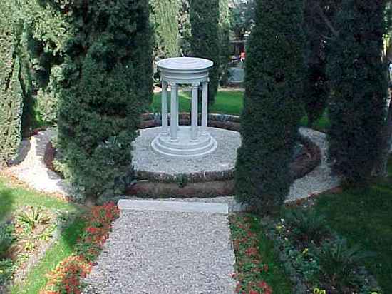 Tombe de la Femme d'Abdu'l-Baha au centre du jardin de la Maison Universelle de Justice.
