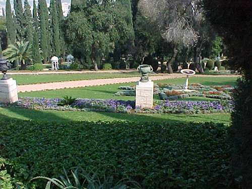 Tombes jumelles du fils et de la femme de Baha'u'llah au centre du jardin de la Maison Universelle de Justice.