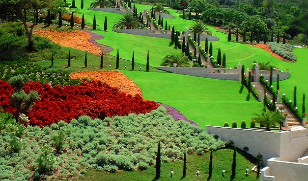 Vue détaillée de la terrasse 2 au pied du mont Carmel en dessous du mausolée du Bab.