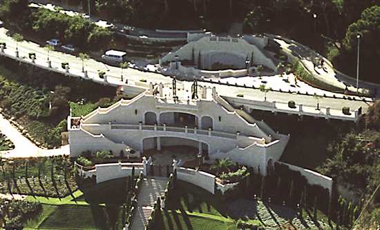 Vue détaillée de la terrasse 19 au sommet du mont Carmel au dessus du mausolé du Bab.